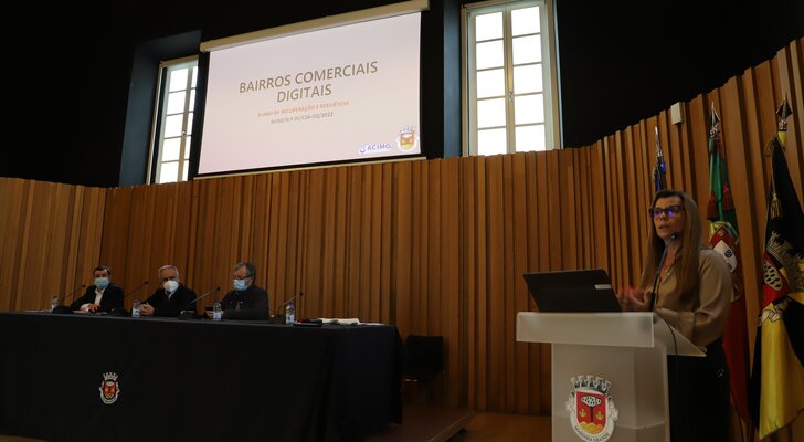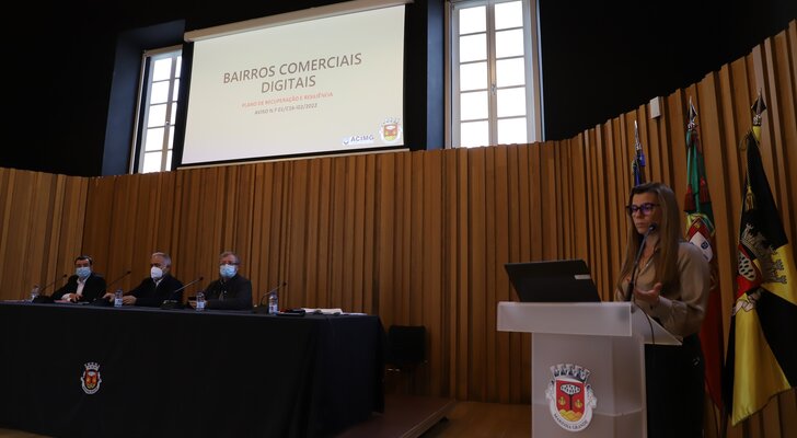 As explicações acerca do programa “Bairros Comerciais Digitais” foram asseguradas por Catarina Morgado, da Câmara Municipal; e por Filipe cardal, da ACIMG.