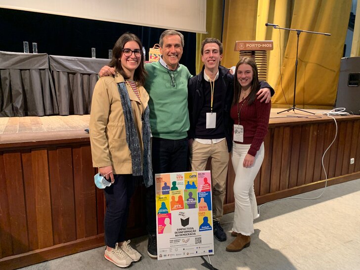 Demonstrando uma grande preocupação com a questão das fake news, tão presentes no seu dia a dia e exponencial- mente difundidas pelas redes sociais, os alunos discutiram diversas propostas para o seu combate, que passam pela educação dos jovens, através da escola, mas também pela criação de entidades que regulamentem e controlem a divulgação de notícias falsas, bem como pela melhoria dos índices de literacia mediática da população em geral, como fez saber o docente António Santos.