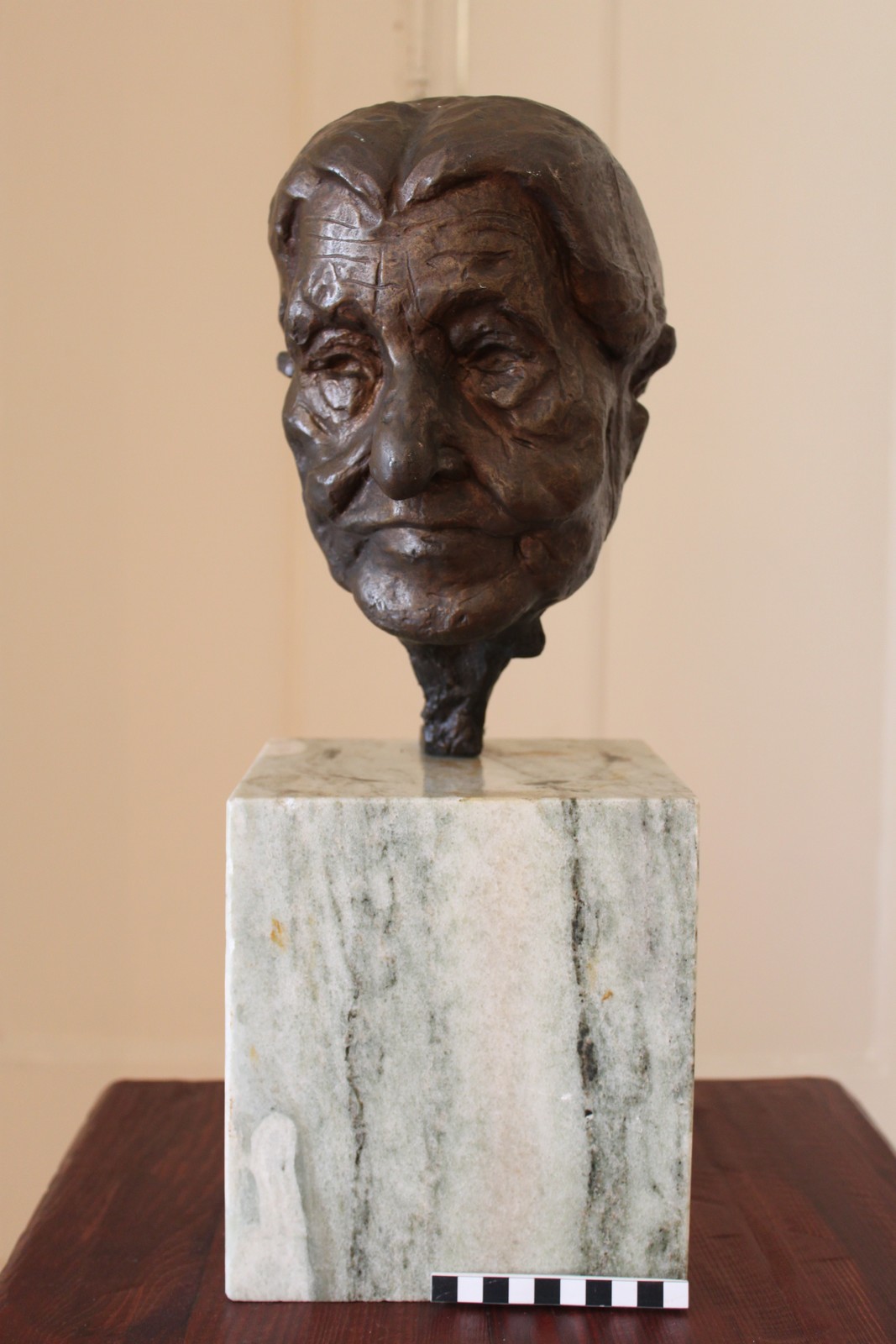 O ar doce e sereno é marcado por traços de velhice: rugas profundas; olhos encovados de quem pouco já verá; pele flácida que cai. O efeito luz/ sombra da demarcação entre a testa e o cabelo sugere os cabelos brancos da senhora. Este é um retrato que representa uma estereotipação formal da idade sénior através do registo artístico da realidade.