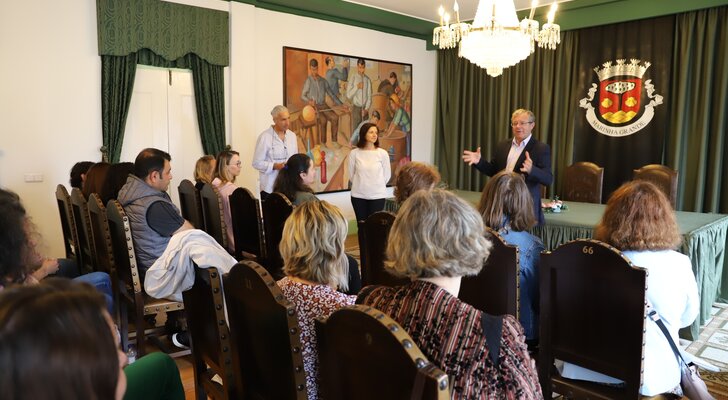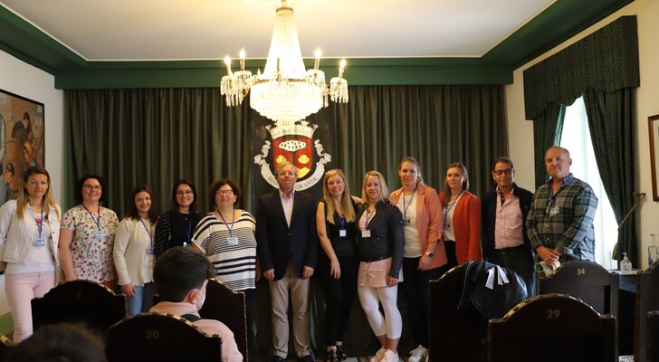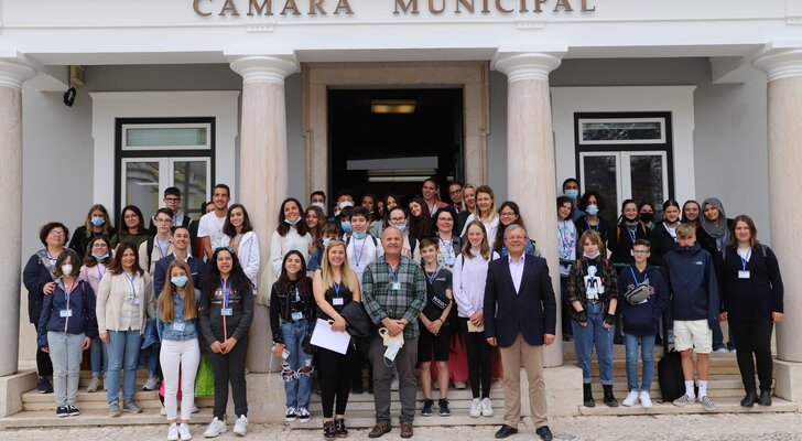 À tarde, os autarcas receberam um grupo de 40 alunos e 10 professores, que participam no projeto Erasmus + subordinado ao tema “ Revolution of foreign language teaching, the combination of old-school and innovative ICT methods ”, provenientes da Alemanha, Hungria e Itália, que estão em permuta educativa e cultural com o Agrupamento de Escolas Marinha Grande Nascente.