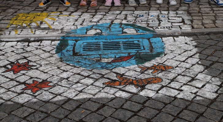 O Município da Marinha Grande, o Jardim de Infância / Escola do 1º ciclo João Beare, a Escola Pátio da Inês e a Escola Secundária Eng.º Acácio Calazans Duarte desafiam a população a refletir que “O Mar começa aqui”, nomeadamente nas sarjetas de passeios e sumidouros, como forma de alertar para a necessidade de uma maior consciência ambiental.