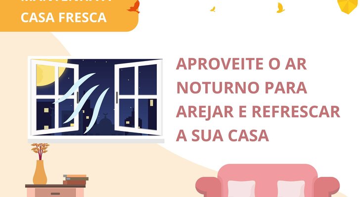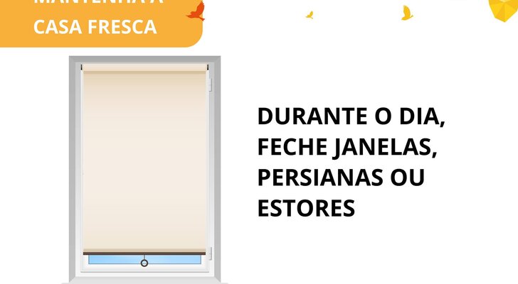 - Durante o dia, feche janelas e persianas; à noite, faça o oposto, aproveitando o ar fresco para arrefecer os edifícios.
