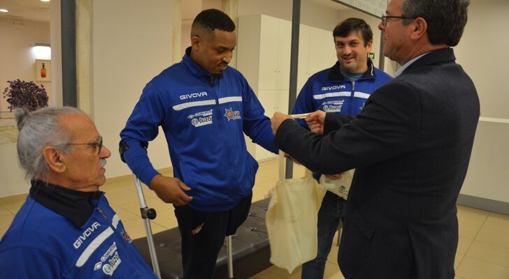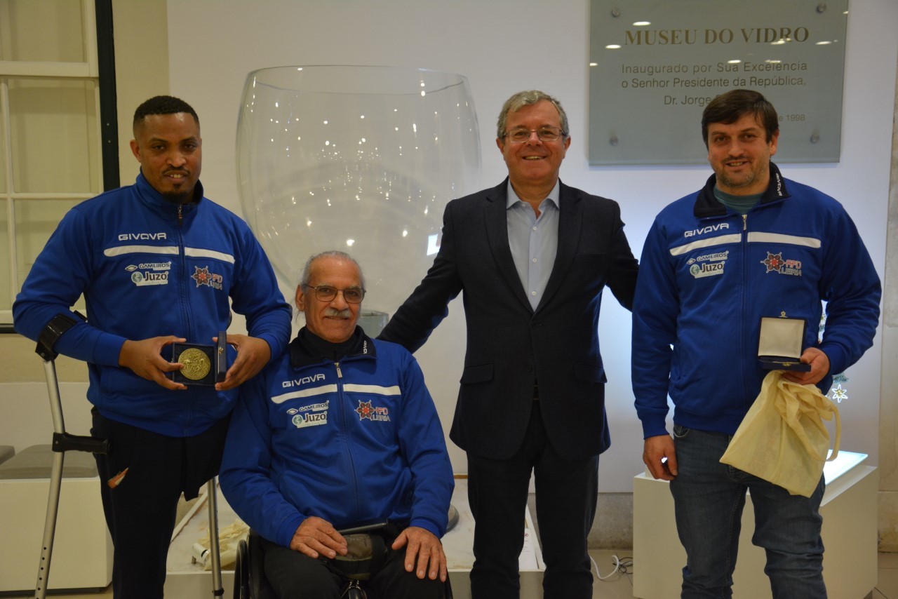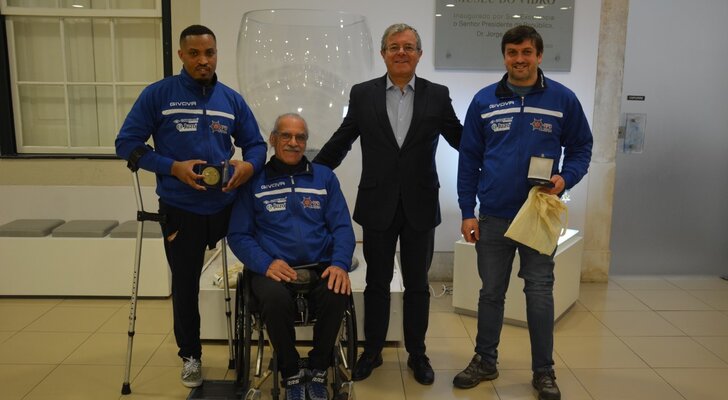 Aurélio Ferreira felicitou os atletas Iderlino Gomes e Marco Francisco e o assistente da seleção nacional e vice-presidente da delegação de Leiria da Associação Portuguesa de Deficientes (APD), Manuel Sousa, pelo título alcançado no passado mês de novembro, na primeira edição do Campeonato do Mundo e da Europa de andebol em cadeira de rodas, frente aos Países Baixos.