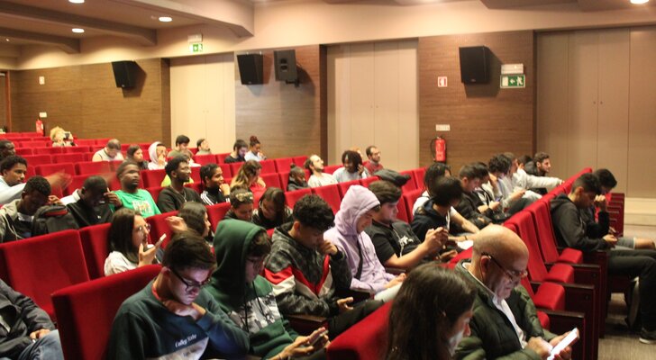 Assistiram à sessão, alunos da Escola Profissional e Artística da Marinha Grande (EPAMG) e do Centro de Formação Profissional da Indústria Metalúrgica e Metalomecânica (CENFIM).