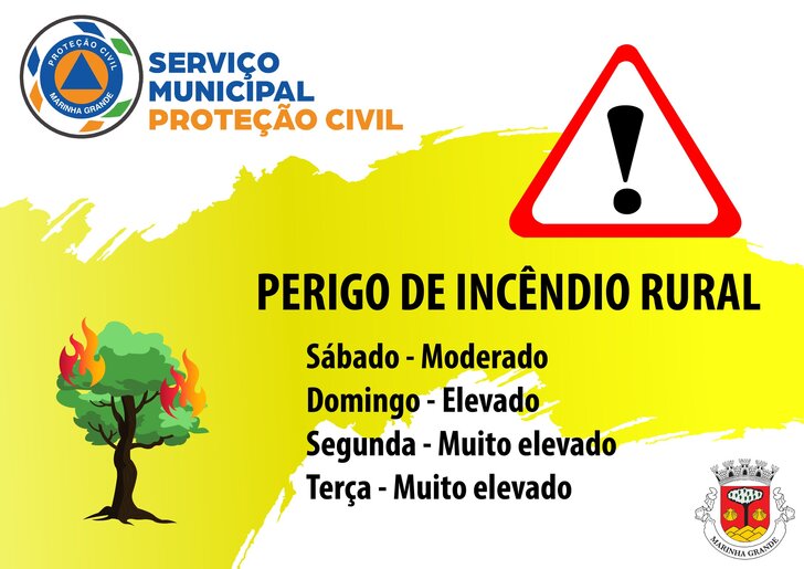 Acompanhe a evolução do perigo de incêndio para os próximos dias, disponível em www.ipma.pt, www.icnf.pt, ou junto dos Serviço Municipal de Proteção Civil da Marinha Grande pelo smpc@cm-mgrande.pt