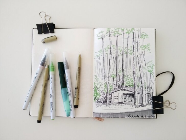 Cada participante deverá trazer um caderno de desenho (formato A5 é prático, mas pode ser outro) de folha branca, material de desenho que goste de usar (canetas, lápis, marcadores, outros) e umas molas para prender as páginas dos cadernos.