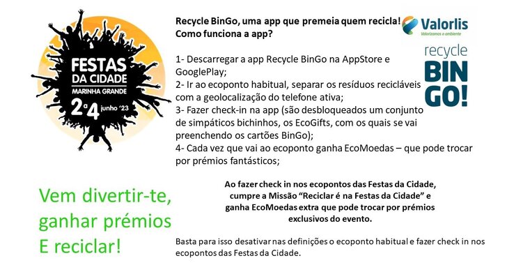 A Valorlis criou uma Missão Especial Recyclebingo dedicada ao evento “Reciclar é nas Festas da Cidade”.