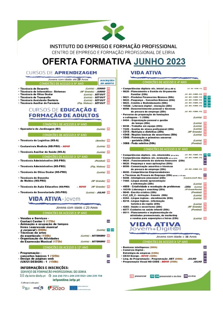 IEFP Leiria - Cursos de Aprendizagem - Plano de Formação 2023