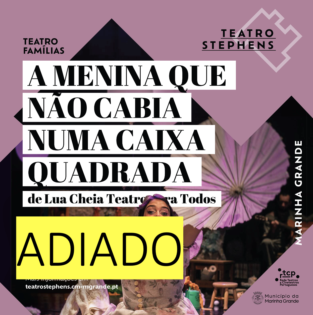 Por motivos imprevistos e que nos são alheios, informamos que o espetáculo A Menina que não cabia numa Caixa Quadrada, da Lua Cheia Teatro para Todos, foi adiado para uma data que anunciaremos brevemente.
