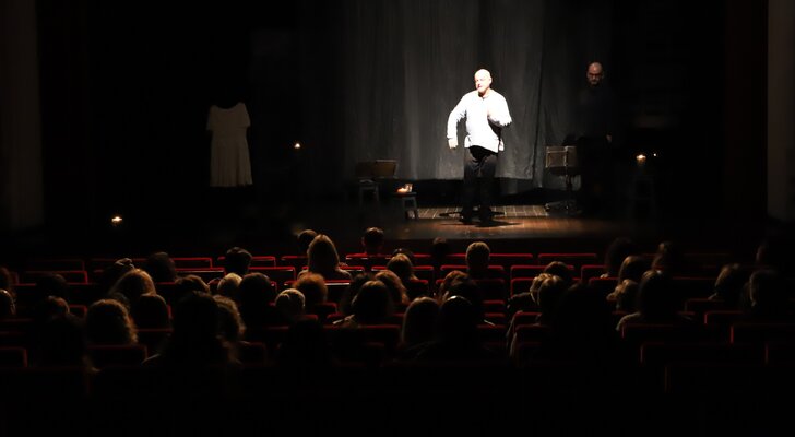 Durante quase duas horas, o Teatro Stephens, na Marinha Grande, foi tomado pela excelência da representação do ator e encenador Miguel Seabra, acompanhado, ocasionalmente, pela música de Rui Rebelo e pela simplicidade e nobreza dos efeitos cénicos da peça “O Sr. Ibrahim e as Flores do Corão”, na noite de sábado, 25 de novembro.