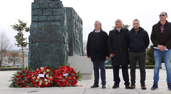 O presidente da Câmara Municipal da Marinha Grande, Aurélio Ferreira; o presidente da Assembleia Municipal, Aníbal Curto Ribeiro; os vereadores Ana Alves Monteiro e João Brito; e a presidente da Junta de Freguesia da Marinha Grande, Maria Neves; e outros representantes das entidades locais, associaram-se às comemorações do 18 de Janeiro, organizadas pelo Sindicato dos Trabalhadores da Indústria Vidreira, na manhã desta quinta-feira, junto ao Monumento ao 18 de Janeiro de 1934.
