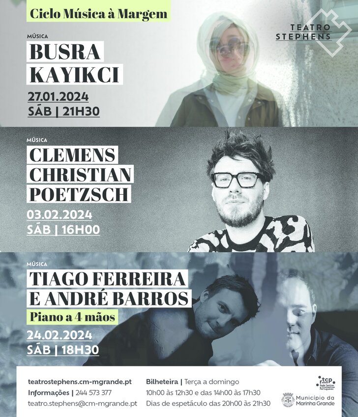 No âmbito do “Ciclo de Música à Margem”, o Teatro Stephens, na Marinha Grande, recebe os três primeiros concertos, de projetos artísticos experimentais, nos dias 27 de janeiro, 3 e 24 de fevereiro.