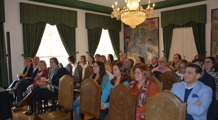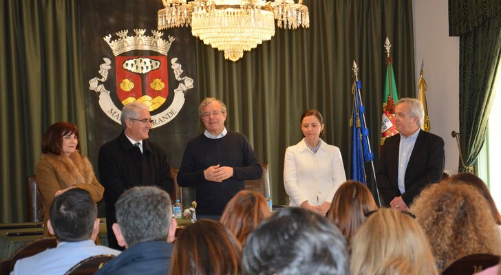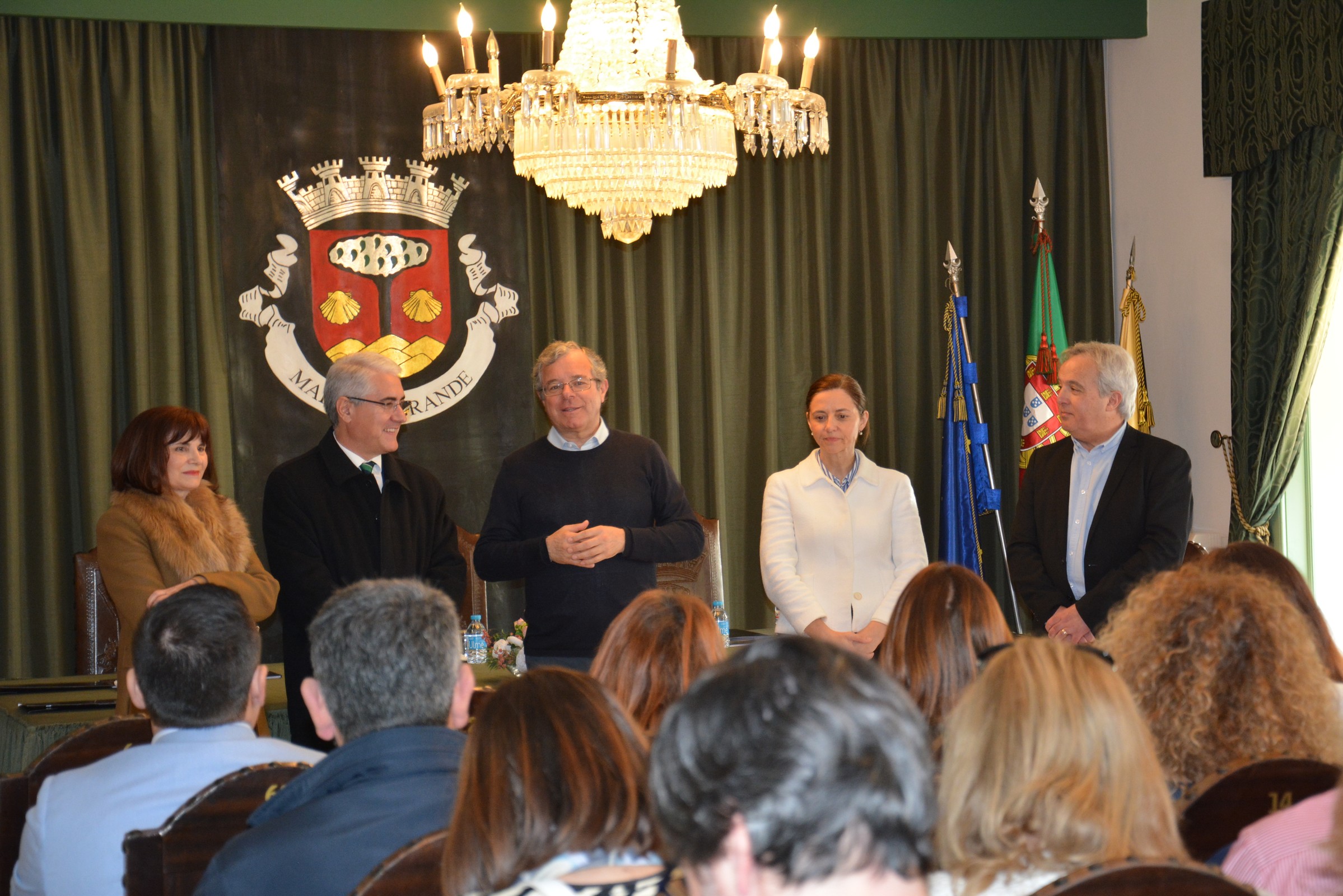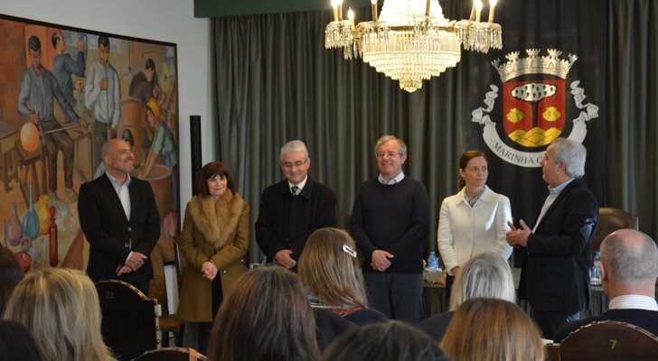 O presidente da Câmara Municipal da Marinha Grande, Aurélio Ferreira, e os vereadores Ana Alves Monteiro e João Brito, receberam no dia 26 de janeiro, os parceiros do projeto “À Descoberta das 4 Cidades”, no Salão Nobre dos Paços do concelho.