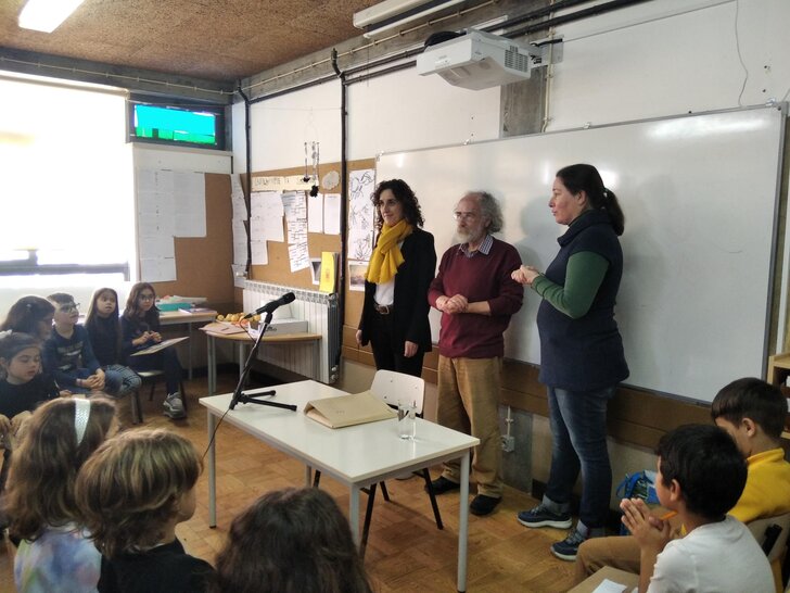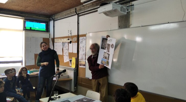 As crianças questionaram Pedro Correia acerca da vida e obra do seu pai, manifestando entusiasmo por poderem contar com a colaboração do filho do artista na preparação da exposição. Para além de informações biográficas, o arquiteto partilhou referências ao lugar de Casal de Malta e pormenores da planta da escola.
