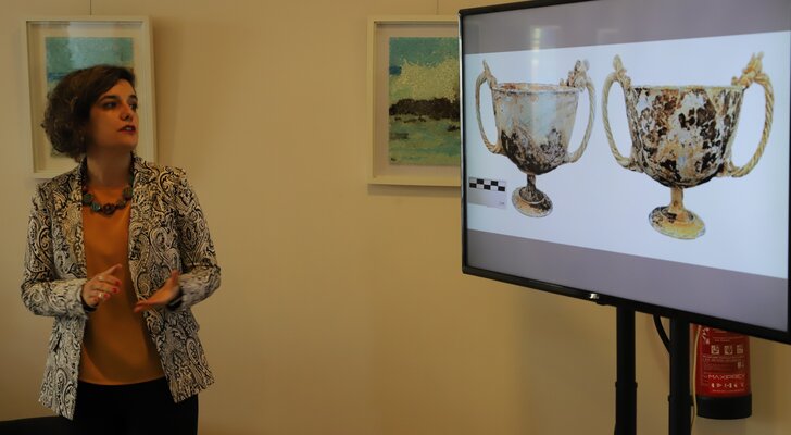 A oradora esclareceu que a conservação e restauro de vidro é um trabalho altamente especializado, que tem como objetivo fundamental devolver às peças estabilidade química e física, de forma a que estas possam ser apreciadas pelo público em geral e de forma a promover o seu estudo, contribuindo para a valorização do vidro e da sua história em Portugal e além fronteiras.
