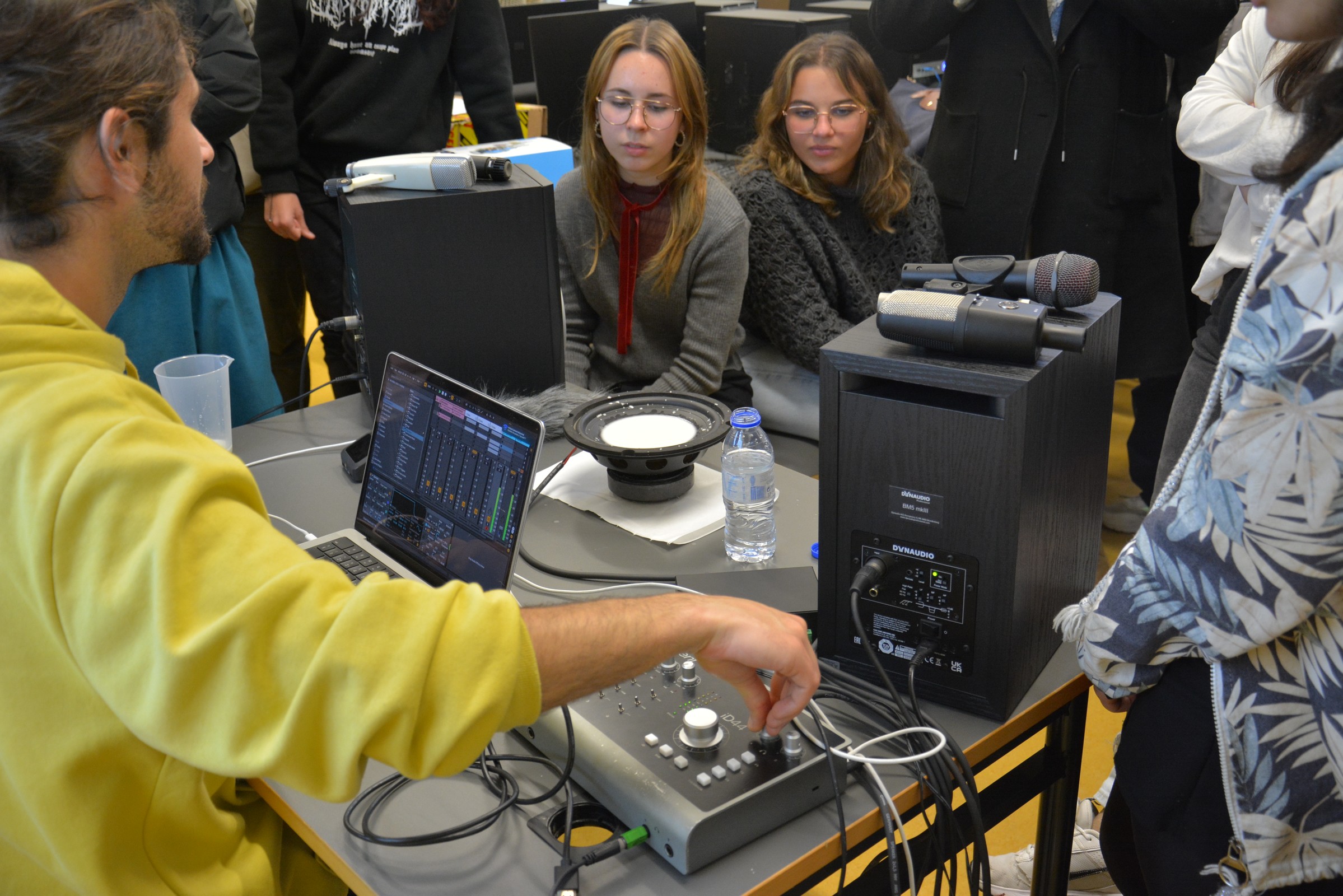 A iniciativa é concretizada nas turmas do 12.º ano de Artes Visuais e do curso profissional de Multimedia. Pretende trabalhar e desmistificar processos científicos e de pensamento conceptual, aliados às práticas de criação sonora. Numa primeira fase, são desconstruídos conceitos básicos dos fundamentos do áudio e tecnologias associadas e, posteriormente, são propostos exercícios de reflexão com base na escuta crítica e ativa.