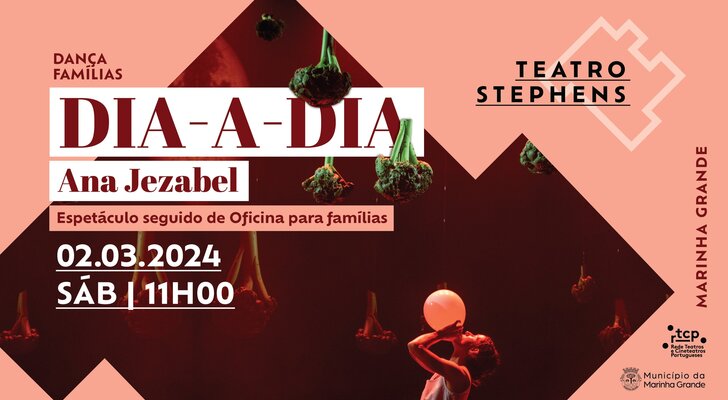 O Teatro Stephens, na Marinha Grande, recebe o espetáculo de dança “Dia-a-Dia”, da coreógrafa Ana Jezabel, seguido de uma oficina para famílias, no dia 2 de março (sábado), pelas 11h00, cuja entrada é gratuita.