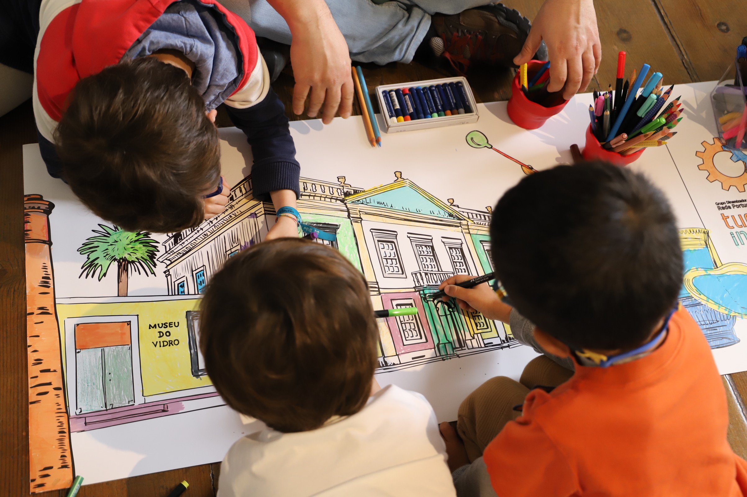 O Museu do Vidro recebeu na tarde deste domingo, 24 de março, a oficina de desenho e pintura colaborativa para famílias “Pintar (n)o Museu”, no âmbito da Semana do Turismo Industrial.