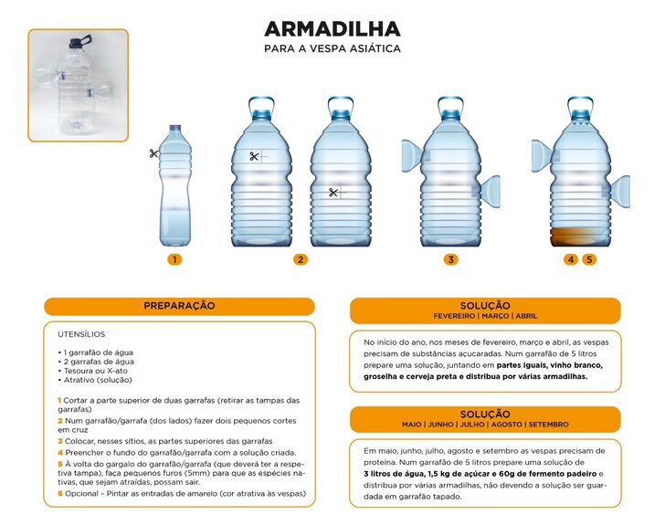 Após a colocação das armadilhas serão efetuadas, quinzenalmente, ações de monitorização das armadilhas, trocando os atrativos e efetuando a contagem das vespas capturadas.