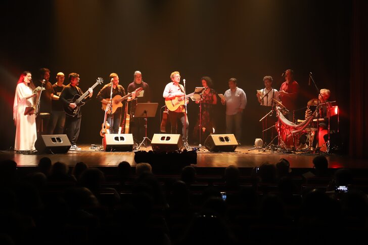 Música e teatro celebraram 50 anos de liberdade. Escutaram-se canções icónicas que se tornaram hinos e que refletem as transformações sociais, políticas e culturais que se seguiram à revolução.