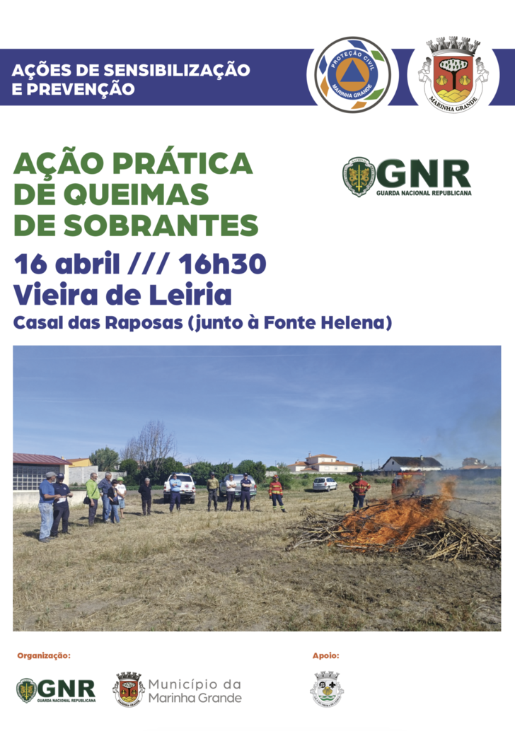 Estas iniciativas, que começaram no dia 2 de abril e que se prolongam até 10 de maio, são organizadas em parceria com a Guarda Nacional Republicana, Polícia de Segurança Pública, as Juntas de Freguesia da Marinha Grande, Moita e de Vieira de Leiria e Associação de Produtores Florestais dos Concelhos de Alcobaça e Nazaré.