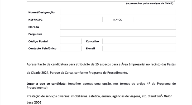CANDIDATURAS PARA A CONCESSÃO DE 15 ESPAÇOS PARA ÁREA EMPRESARIAL NAS FESTAS DA CIDADE