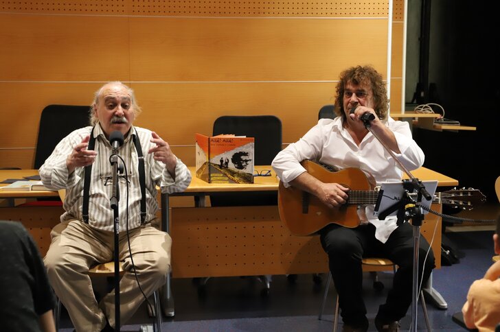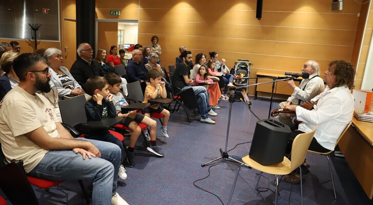 A poesia, as histórias e as músicas de intervenção foram ditas e cantadas pelo poeta José Fanha e pelo compositor Daniel Completo, num espetáculo realizado no Auditório da Biblioteca Municipal da Marinha Grande, na tarde deste sábado, 20 de abril.
