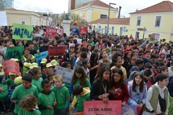 Cerca de 600 alunos dos três Agrupamentos de escolas do concelho participaram na iniciativa “Todos à Manif”, que decorreu na manhã desta sexta-feira, 26 de abril, na Praça Stephens, na Marinha Grande.