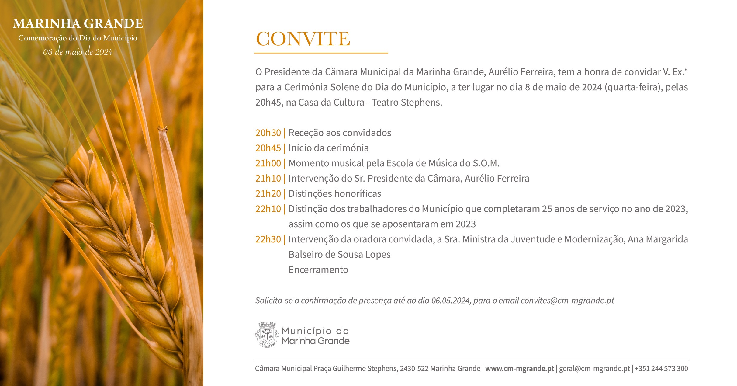A celebração do Dia do Município vai contar com a intervenção da oradora convidada, a Ministra da Juventude e Modernização, Ana Margarida Balseiro de Sousa Lopes.