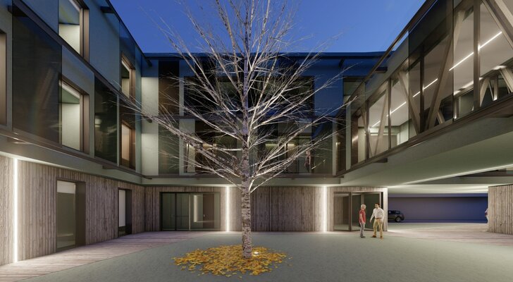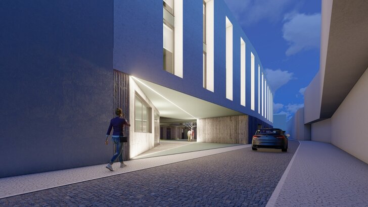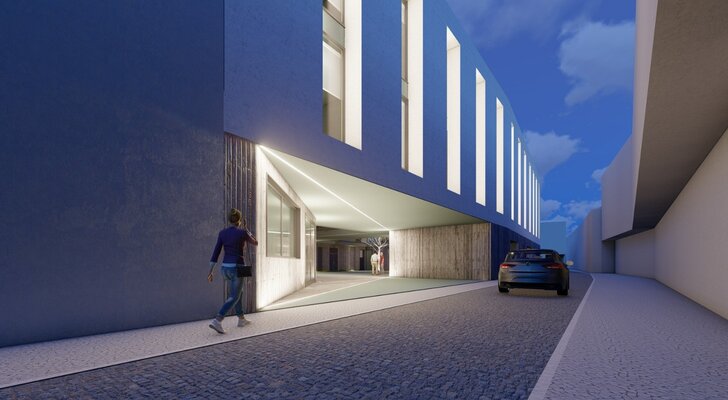 O projeto de reabilitação do edifício da antiga Albergaria Nobre, localizado na Rua Alexandre Herculano, prevê um investimento de 2.993.316,80 euros, a que acresce o IVA. A solução considera uma reinterpretação do vidro da Marinha Grande, utilizando grandes planos de vidro e um acabamento de fachada na cor verde garrafa na fachada do piso 1 e do piso 2. Propõe, também, uma relação com o pinhal através do acabamento exterior no piso 0, reinterpretando a cor do tronco e que, com o verde dos pisos superiores, relaciona cromaticamente o edifício com a imagética do pinhal.