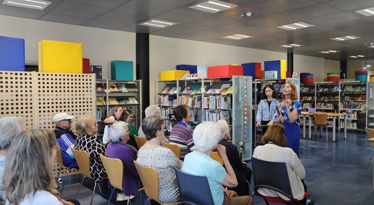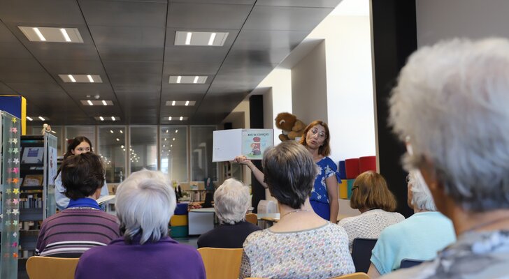 Esta terça-feira, dia 16 de julho, ocorreu uma sessão de leitura, na Biblioteca Municipal da Marinha Grande, destinada a idosos do Centro Social e Paroquial de Vieira de Leiria.