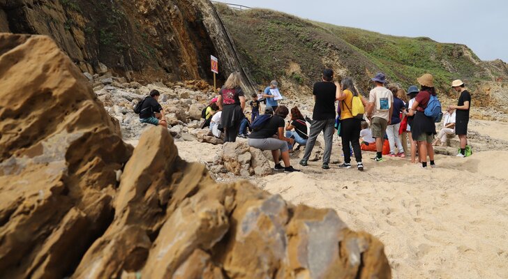 Através das explicações do professor Luís Vítor Duarte, consagrado investigador do Departamento de Ciências da Terra da UC, e da observação de alguns locais deste setor único da orla costeira portuguesa, os participantes “mergulharam” nos mares jurássicos e discutiram a origem e a evolução geológica. São Pedro de Moel representa um paraíso para todos os amantes da paleontologia, dada a abundância e diversidade de fósseis, desde invertebrados marinhos, a peixes e construções de natureza microbiana.
