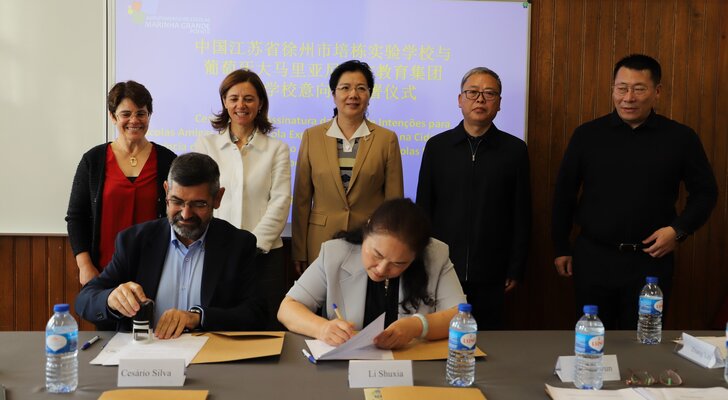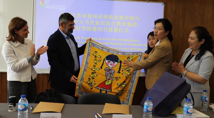 A Carta de Intenções para Escolas Amigas foi formalizada entre o Agrupamento de Escolas Marinha Grande Poente e a Escola Experimental de Peidong, na cidade de Xuzhou.