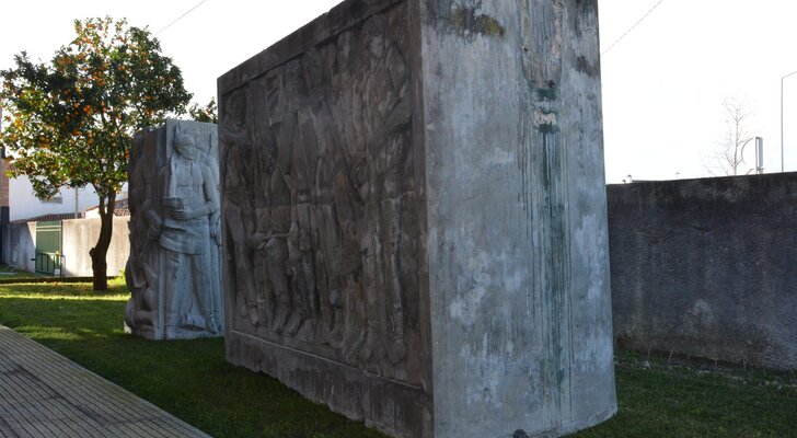 Evocativo do levantamento dos operários vidreiros em 18 de janeiro de 1934, relembra as dificuldades passadas por esta classe operária. O conjunto escultórico da autoria do escultor marinhense Joaquim Correia, é composto por dois blocos de pedra, um dos quais alberga a estátua de um operário vidreiro armado e outro ostenta um baixo-relevo que representa operários a trabalhar o vidro.