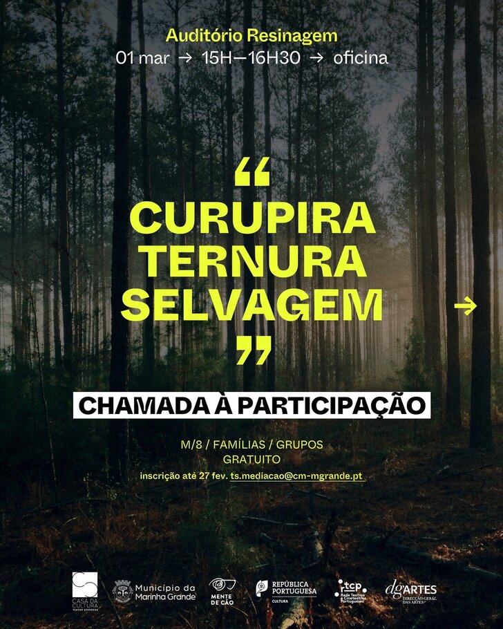 Curupira. Ternura. Selvagem. Estas três palavras-paisagens inspiram uma reflexão sobre a nossa relação com a floresta e a natureza. Este é um convite para participar no processo de criação de um espetáculo e um convite às famílias que queiram participar neste encontro, para falar-pensar-dançar sobre as florestas que podemos experienciar, através dos sentidos e da imaginação.