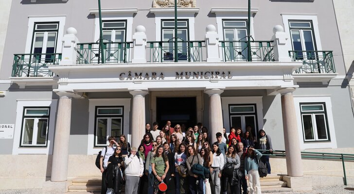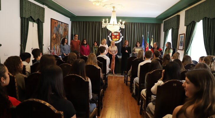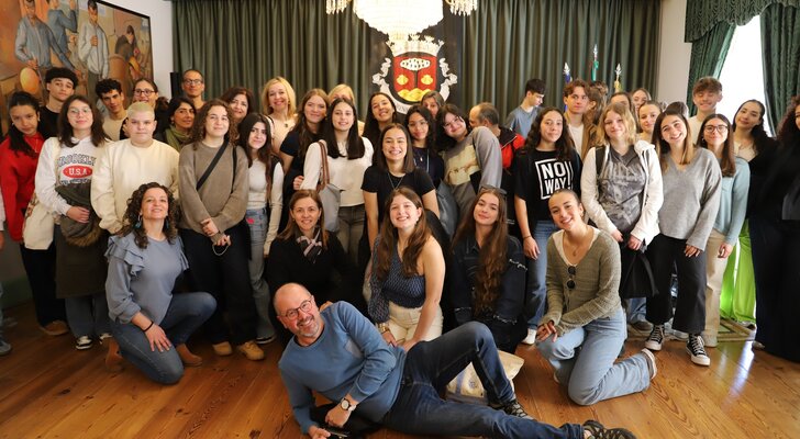 Cerca de 50 alunos e professores que integram o projeto Erasmus+ RACine foram recebidos no Salão Nobre dos Paços do Concelho, no dia 25 de março, pela vice-presidente da Câmara Municipal da Marinha Grande, Ana Alves.