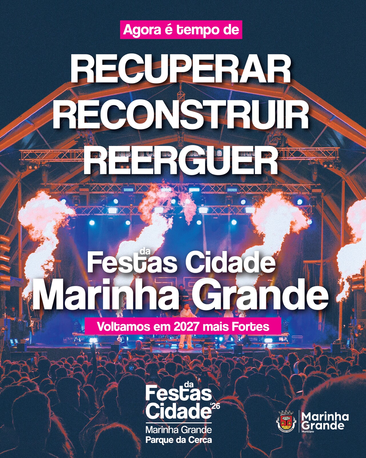 A Câmara Municipal da Marinha Grande informa que, devido aos significativos impactos provocados pela recente tempestade em todo o concelho, a edição de 2026 das Festas da Cidade será cancelada.
