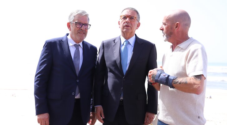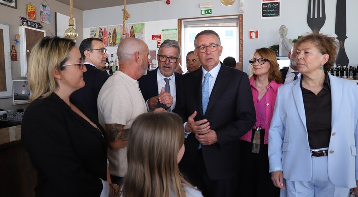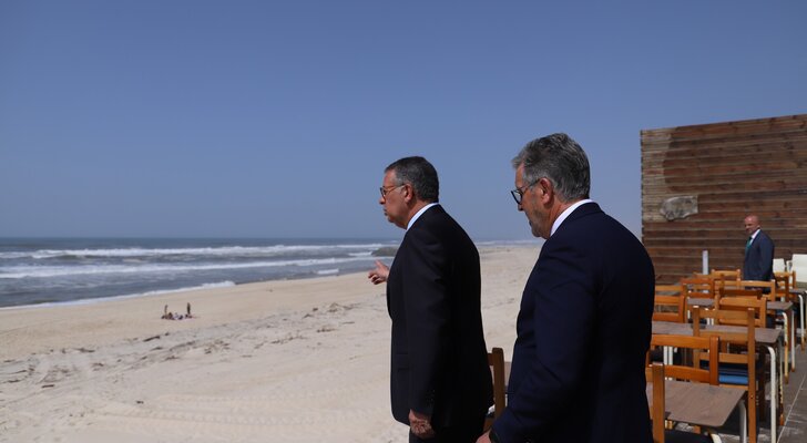 O programa da visita teve início na Praia da Vieira, com passagem pela Avenida Marginal, até aos Pavilhões da Arte Xávega.
