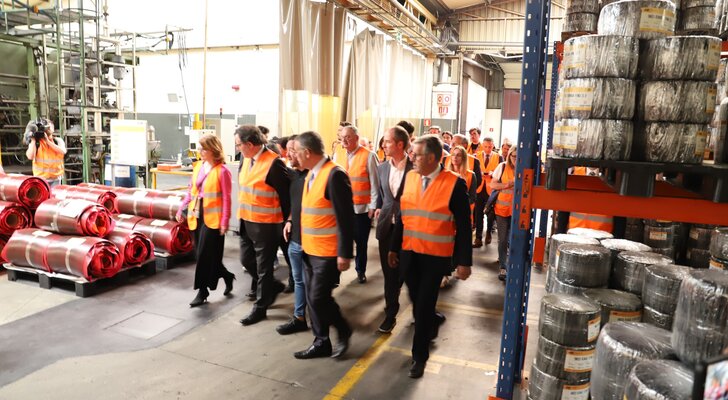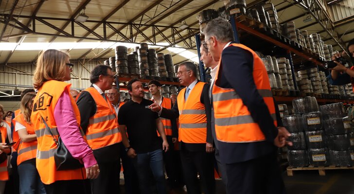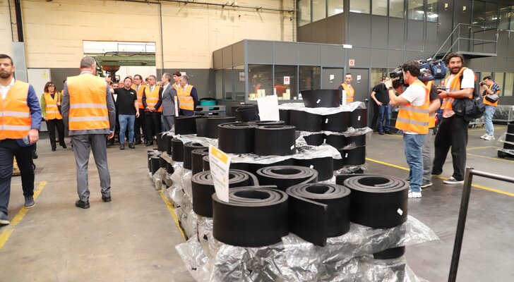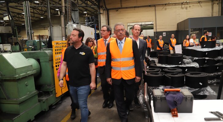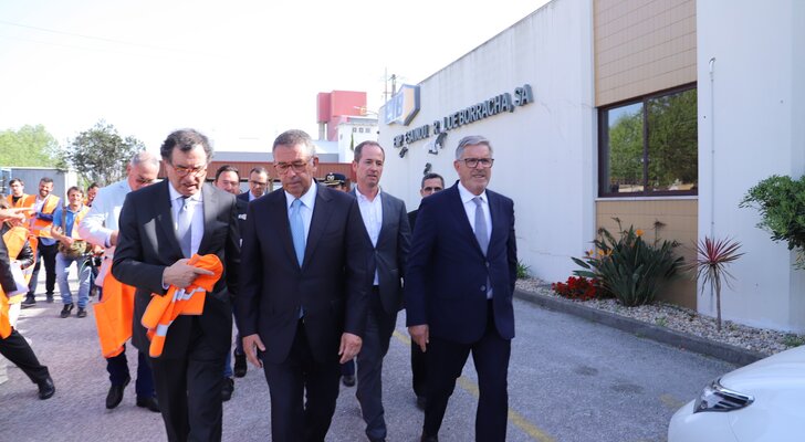 A comitiva visitou o Eucalipto Centenário, no Tremelgo, seguindo depois para uma visita à Empresa Industrial de Borracha, S.A., na Zona Industrial da Marinha Grande.
