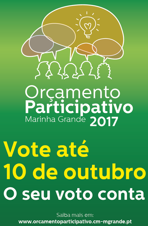 Termina às 12h00 do dia 10 de outubro o prazo de votação do Orçamento Participativo 2017, promovido pela Câmara Municipal da Marinha Grande, havendo a possibilidade de escolha entre cinco propostas apresentadas pelos cidadãos.