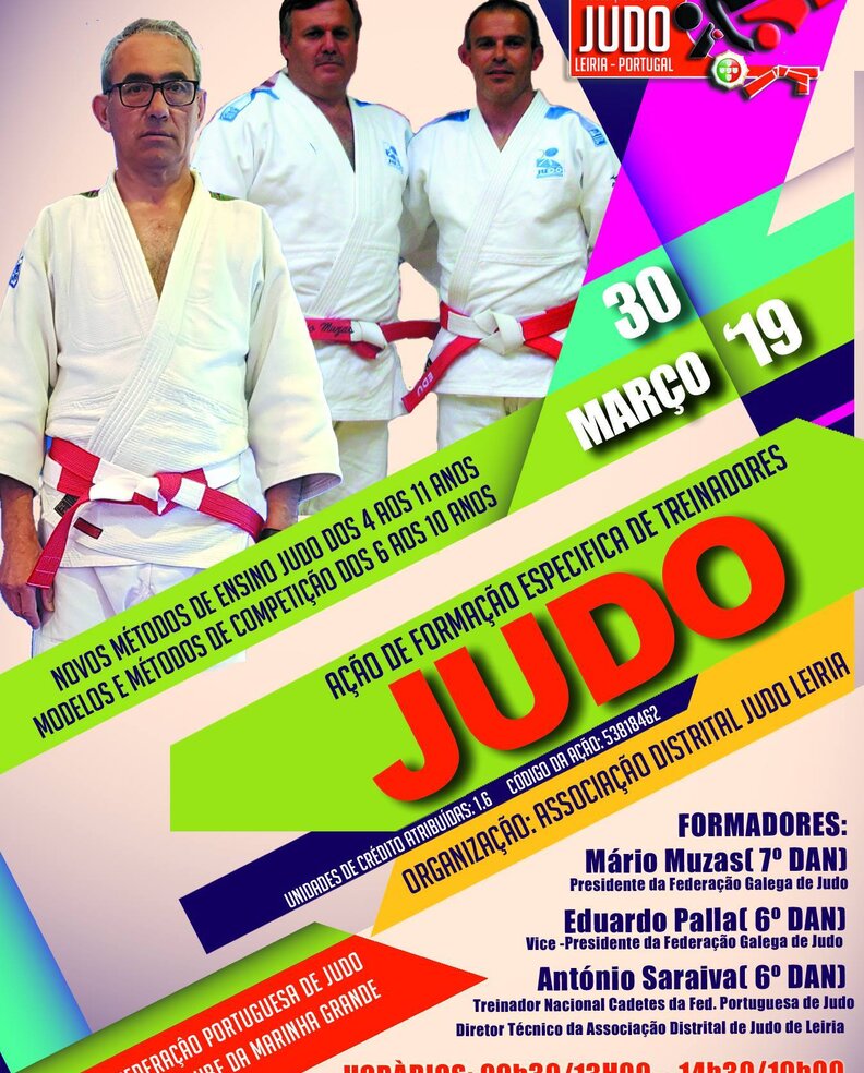 O Judo Clube da Marinha Grande receberá no próximo dia 30 de março, uma formação creditada com 1,6 créditos (ação de formação específica de treinadores).de judo.