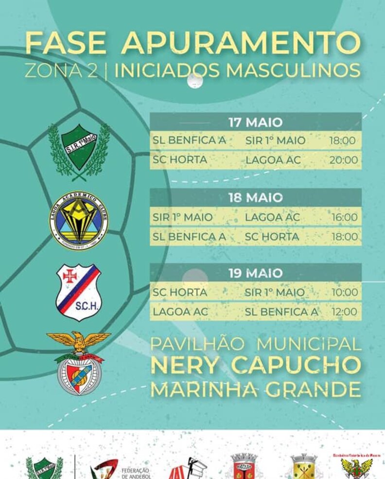 De 17 a 19 de maio, decorre a fase de apuramento para acesso à final de iniciados masculinos na modalidade de andebol, no pavilhão municipal Nery Capucho, na Marinha Grande.
