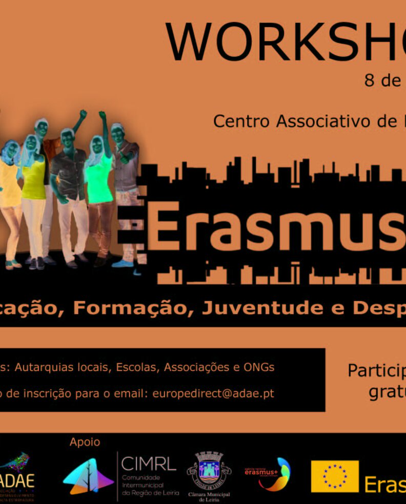 A ADAE em parceria com a CIMRL, está a organizar um workshop sobre o programa ERASMUS + e que poderá ser do vosso interesse, para desenvolver projetos financiados, com parcerios europeus na área da mobilidade, educação, juventude e desporto.