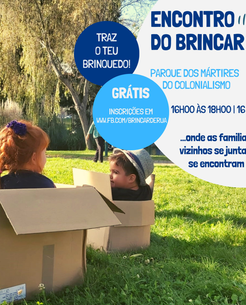 Tarde cheia de brincadeiras entre crianças e famílias na Marinha Grande, dia 16 de novembro, das 16h00 às 18h00, no Parque Mártires Do Colonialismo.