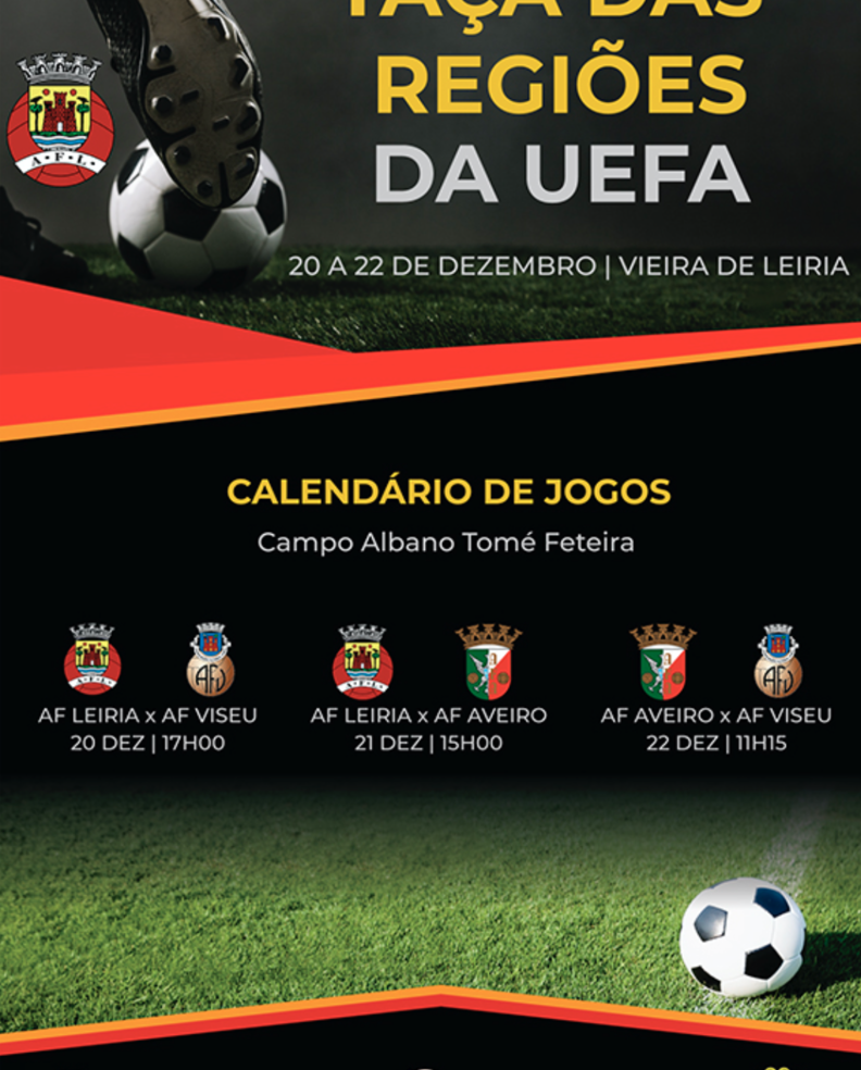 De 20 a 22 de Dezembro de 2019 vai decorrer, em Vieira de Leiria, a Fase Zonal da Taça das Regiões da UEFA que se realiza de dois em dois anos e envolve todas as Seleções Distritais de Futebol Sénior do País.