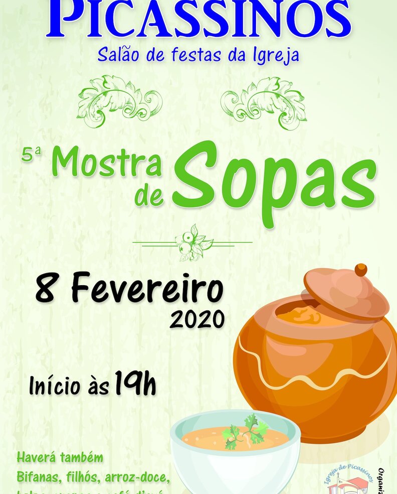 Após o enorme sucesso das últimas edições, será já no próximo dia 8 de Fevereiro que Picassinos irá receber a 5ª Mostra de Sopas, no salão de festas da Igreja de Picassinos.