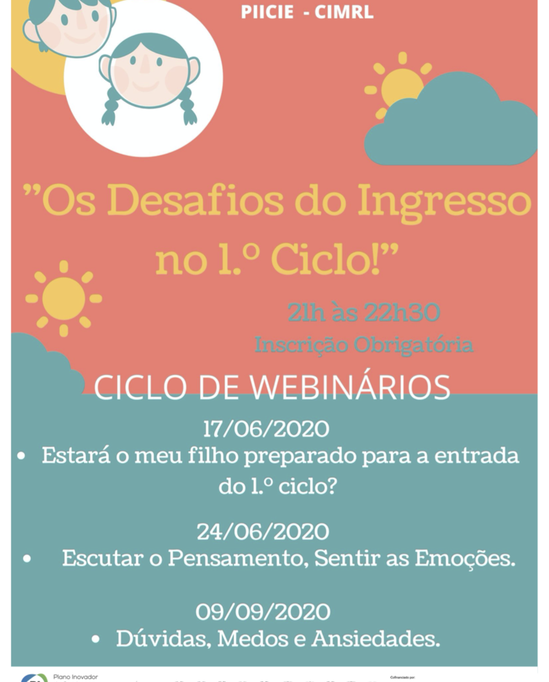 Psicologia: realizar uma série de três webinários, em torno dos desafios do ingresso no 1º ciclo, dando especial ênfase ao caso dos alunos condicionais. O primeiro webinário, intitulado “Estará o meu filho preparado para a entrada do 1º ciclo?” terá lugar no próximo dia 17 de junho; o segundo, intitulado “Escutar o pensamento, Sentir as Emoções” terá lugar no dia 24 de junho e o terceiro, “Regresso às aulas, e agora?”, realiza-se no dia 9 de setembro, todos entre as 21h00 e as 22h30.
