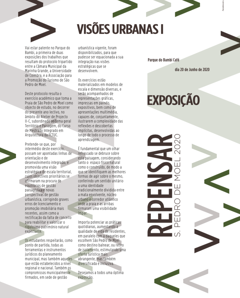 Deste protocolo resulta o exercício académico que toma a Praia de São Pedro de Moel como objecto de estudo, no decorrer do presente ano lectivo, no âmbito do Atelier de Projecto II-C, subordinado ao tema geral Território e Paisagem, do Curso de Mestrado Integrado em Arquitectura da FCTUC.