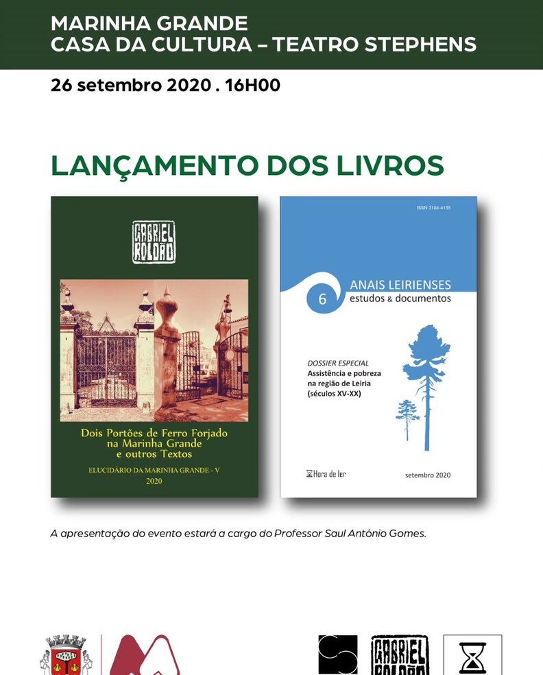 A Câmara Municipal da Marinha Grande, a Editora Hora de Ler e Gabriel Roldão vão promover a apresentação dos livros "Anais Leirienses - Volume 6", de vários autores, e "Dois Portões de Ferro Forjado na Marinha Grande e Outros Textos", da autoria de Gabriel Roldão, que se irá realizar no dia 26 de setembro de 2020 (sábado), pelas 16h00, na Casa da Cultura Teatro Stephens, na Marinha Grande.