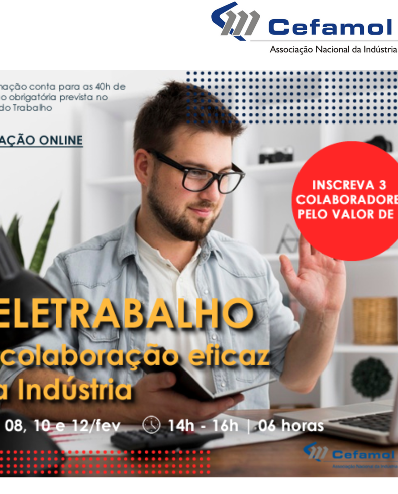 Condições exclusivas para empresas associadas da CEFAMOL: Inscrição até 3 colaboradores pelo valor de 1 inscrição (consultar o programa da ação para informações adicionais).